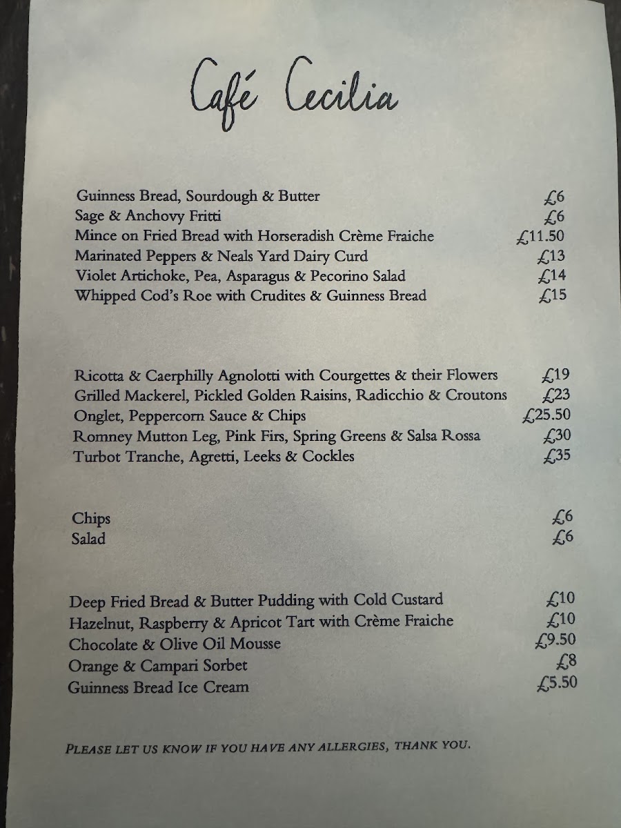 If you're looking for a place to unwind with a great meal, delicious coffee, and a fine glass of wine, Cafe Cecilia is your go-to spot in London. With its vibrant vibe, outstanding dishes like Bone Marrow and Sage and Anchovy Fritti, and exceptional service, you're in for an unforgettable dining experience!
